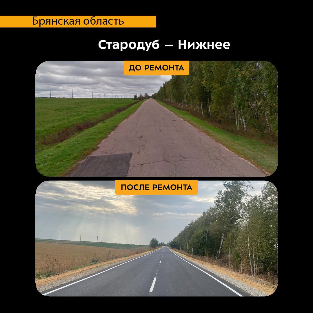 В этом году в нашем регионе в рамках нацпроекта «Инфраструктура для жизни» запланированы масштабные ремонтные работы. Новый нацпроект – преемник национального проекта «Безопасные качественные дороги». Так, в ушедшем году в Стародубском муниципальном округе Брянской области отремонтировали участок автодороги Стародуб – Нижнее. Работы провели благодаря реализации национального проекта «Безопасные качественные дороги». Протяженность обновленной дороги составила 4,6 км. Специалисты подрядной организации АО «Дорожник» уложили новое асфальтобетонное покрытие, отремонтировали водопропускную трубу и съезды, обновили остановочные и посадочные площадки. Установили новые дорожные знаки, нанесли разметку пластиком и краской.