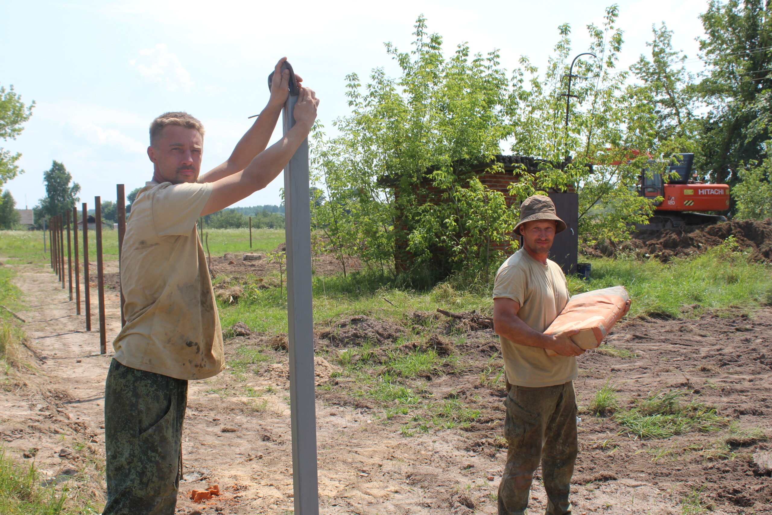 В ходе беседы прораб Александр Ермоченко рассказал, что уже сделано: по улице Чкалова проложили новые водопроводные трубы протяженностью более 500 метров (а всего их надо положить 1100м), установили пожарный гидрант, сделали врезку к существующей водопроводной сети, пришлось им делать и прокол в 45 метров под речкой. А застали мы рабочих за установкой ограждения санитарной зоны водозаборного узла. Напомним, что рабочие проделали большую работу по расчистке от кустарника и деревьев санитарной зоны, залили фундамент под новую водонапорную башню объемом 25м3, произвели подсыпку с трамбовкой песка.