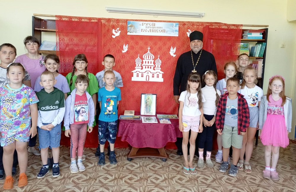 В мероприятии принял участие настоятель храма в честь Рождества Пресвятой Богородицы протоиерей Владимир. Он рассказал ребятам о том, как христианство распространялось на Руси, какую роль сыграл князь Владимир и когда этот праздник стал не только церковным, но и официальным. В ходе рассказа напомнил о том, что христианская вера стала важным элементом объединения Руси. Принятие православия оказало большое влияние на развитие культуры и просвещения.