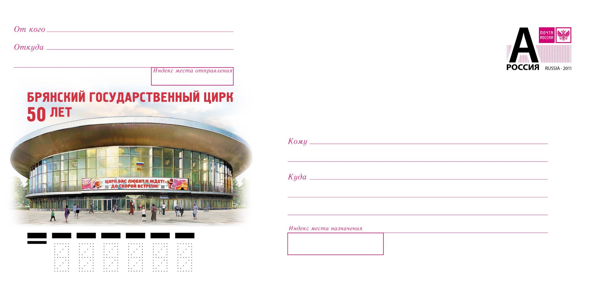 К юбилейной дате Брянского государственного цирка, которую будут отмечать 10 апреля, Почта России подготовила специальный праздничный штемпель и новый маркированный конверт. На конверте изображено монументальное здание Брянского цирка, оттиск штемпеля повторяет его контуры и на нём стоит памятная дата.