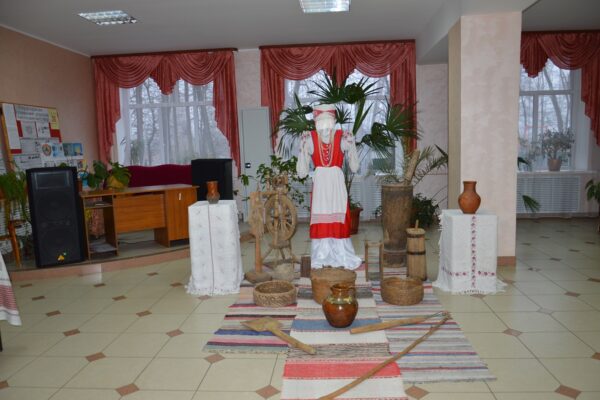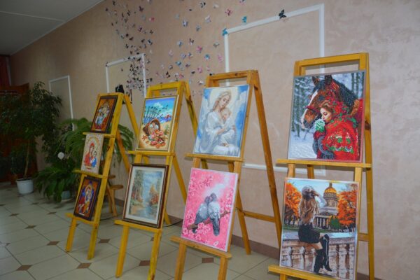 В фойе районного Дома культуры во время праздничного мероприятия, посвященного Дню матери, была организована выставка. На выставке представлены работы декоративно — прикладного искусства, картины, вышитые бисером, алмазной вышивкой, а также выставлены русские народные экспонаты из комнаты крестьянского быта.