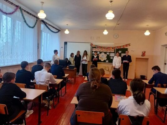 В Творишинской СОШ прошёл патриотический час «Святое дело — Родине служить!». Его провела Надежда с ребятами 11 класса.