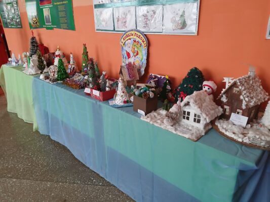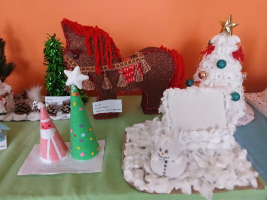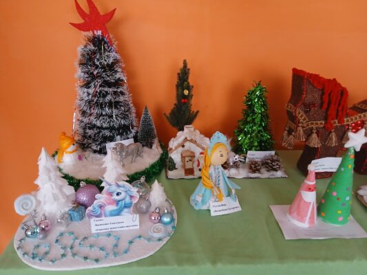 Новый год – это время волшебства, доброй сказки и ожидания чуда. Один из самых любимых всеми, долгожданных, радостных и душевных праздников. В преддверии Нового года в Творишинской школе состоялась долгожданная выставка новогодних поделок «Зимняя сказка», где юные мастера представили свои удивительные творения. На выставке можно увидеть множество ярких и оригинальных работ: сказочные домики, снеговики, ёлочные игрушки ручной работы, сказочные домики и даже целые композиции с Дедом Морозом и символом наступающего года — Лошадью. Все пошло в ход и атласные ленты, и ватные спонжи, и шишки, и бусинки, и бисер и многое другое. Все работы получились интересными и красочными, фантазии умельцев не было предела. Все старались проявить нестандартность в творческом порыве, Каждый участник постарался на славу, вкладывая в свои поделки частичку души и фантазии.