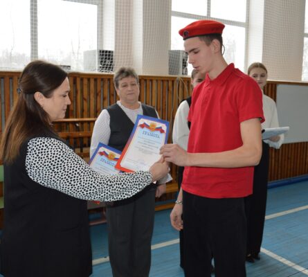В Гордеевском районе завершился месячник оборонно-массовой и военно-патриотической работы «Мы вместе». Его финальным аккордом стало торжественное мероприятие, прошедшее в физкультурно-оздоровительном комплексе «Звёздный».В течение месяца проходили мероприятия, направленные на воспитание патриотизма, увековечивания памяти о подвигах наших героических предков, поддержке военнослужащих, выполняющих боевые задачи в ходе СВО, пропаганды здорового образа жизни. Школьники активно участвовали в уроках мужества, тематических классных часах, конкурсах и соревнованиях, готовили фотопроекты о службе своих пап и дедушек в армии и других мероприятиях, согласно разработанному плану.Закрытие месячника объединило команды школ района, юнармейцев, активистов «Движения Первых», а также учителей и советников директоров по воспитанию.К участникам мероприятия обратилась председатель районной ветеранской организации Валентина Карловская: «Патриотические мероприятия очень важны для молодежи, каждое из них – это соприкосновение с живой историей, а каждый рассказ о славных страницах нашего государства наполнен особым смыслом, что во многом способствует гражданскому и нравственному становлению личности. Сегодня, как никогда, важно знать нашу историю, помнить о событиях, чтить память защитников нашей Родины, отдавших долг в разные годы, когда над страной нависала грозная опасность». Валентина Павловна выразила слова благодарности всем ребятам, принимавшим участие в различных мероприятиях месячника.На торжестве по случаю закрытия месячника подвели итоги работы, вручили заслуженные награды. Валентина Карловская вручила грамоты отдела образования администрации района победителям муниципального конкурса открыток, посвященного Дню защитника Отечества.По итогам спортивной эстафеты, проводимой в месячник оборонно-массовой и военно-патриотической работы «Мы вместе» отмечены: 1 место заняла команда Петровобудской школы, 2 место – Гордеевской СОШ, 3 место у команды Мирнинской СОШ. Грамоты вручила Галина Якубович, председатель местного Совета «Движения Первых».В рамках закрытия месячника прошла спортивная эстафета, в которой приняли участие команды школ. Каждая команда получила возможность продемонстрировать свои навыки, ловкость и знания. Участники показали не только спортивные умения, но и командный дух, креативность и стремление к победе. Первое место заняла команда Мирнинской СОШ, второе место у команды Петровобудской ООШ, третье у Творишинской СОШ. Несмотря на закрытие месячника, работа педагогов и учащихся на этом не заканчивается. Впереди их ждёт огромное количество мероприятий, связанных с Годом единства народов России. Самые важные из них будут посвящены патриотическому воспитанию нашей молодёжи.