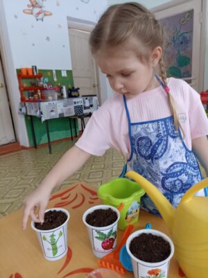 Солнышко с каждым днём всё выше и выше, а день всё длиннее и теплее. Пришло время посадок. Огород на окне в детском саду является очень приятным занятием, особенно зимой или весной, когда хочется не только отведать свежие дары природы, но и посмотреть на цвета зелени. Но нет ничего приятнее, когда первая весенняя зелень поспевает прямо у тебя на окошке. Дети вместе с педагогами высаживали лук, петрушку, укроп, листья салата и др. «Огород на окне» – отличный способ развеять сезонную тоску по природным цветам и теплу. Расширения представлений детей о том, как ухаживать за растениями в комнатных условиях, обобщения представлений о необходимости света, тепла, влаги почвы для роста растений, развития познавательных и творческих способностей детей.