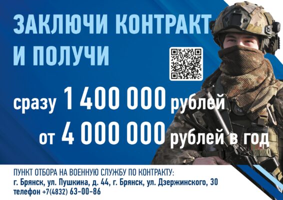 –  В настоящее время особенно важно подчеркнуть необходимость консолидации общества и укрепления веры в страну, её руководство и народ. Мы являемся свидетелями и демонстрируем международному сообществу способность российского гражданина защищать свои интересы и интересы государства, проявляя при этом высокий уровень ответственности, воли к победе, мужества и героизма. Многие граждане осознают это и добровольно принимают решение о прохождении военной службы по контракту. Считаю, что эффективная оборона государства от внешних угроз возможна только при наличии высококвалифицированной и хорошо подготовленной армии. В ходе специальной военной операции  российские военнослужащие демонстрируют высокий уровень профессионализма, выполняя поставленные задачи с точностью и решительностью, проявляя мужество, стойкость и отвагу. Они уверены в поддержке со стороны государства, включая обеспечение благополучия их семей. Желающие поступить на военную службу по контракту, могут обратиться с заявлением лично, почтовым отправлением, по телефону в пункт отбора или военный комиссариат; либо через личный кабинет гражданина на официальном сайте Минобороны России, а также через электронный сервис «Стать добровольцем или контрактником» на едином портале государственных услуг (gosuslugi.ru). Адрес пункта отбора на военную службу по контракту: г. Брянск, улица Пушкина, д. 44, телефон + 7 (4832) 63-00-86, e-mail: povsk-bryansk@mil.ru. Можно подать заявку на портале https://www.gosuslugi.ru/ («Госуслуги») или официальном сайте Минобороны. А также можно обратиться в военный комиссариат по г. Клинцы, Клинцовскому, Гордеевскому и Красногорскому районам.